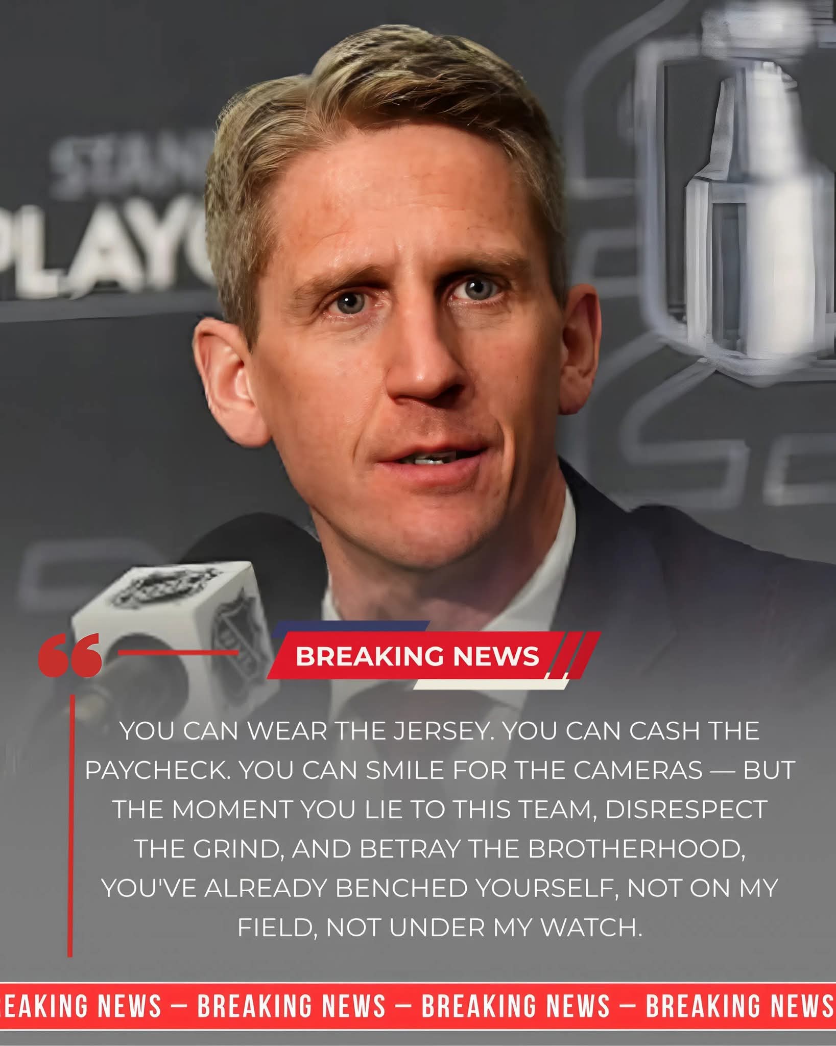 > “If you think skipping practice and lying about it makes you an Edmonton Oiler, think again — not on my ice, not under my watch,”