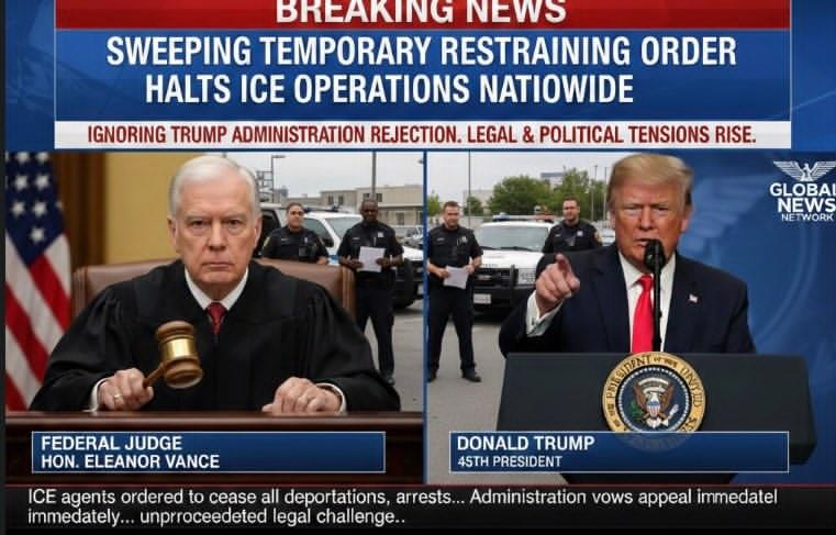 BREAKING: Federal Judge Issues Sweeping Temporary Restraining Order Halting ICE Operations Nationwide, Ignoring Strong Rejection From Donald Trump Administration, Raising Legal and Political Tensions⤵️