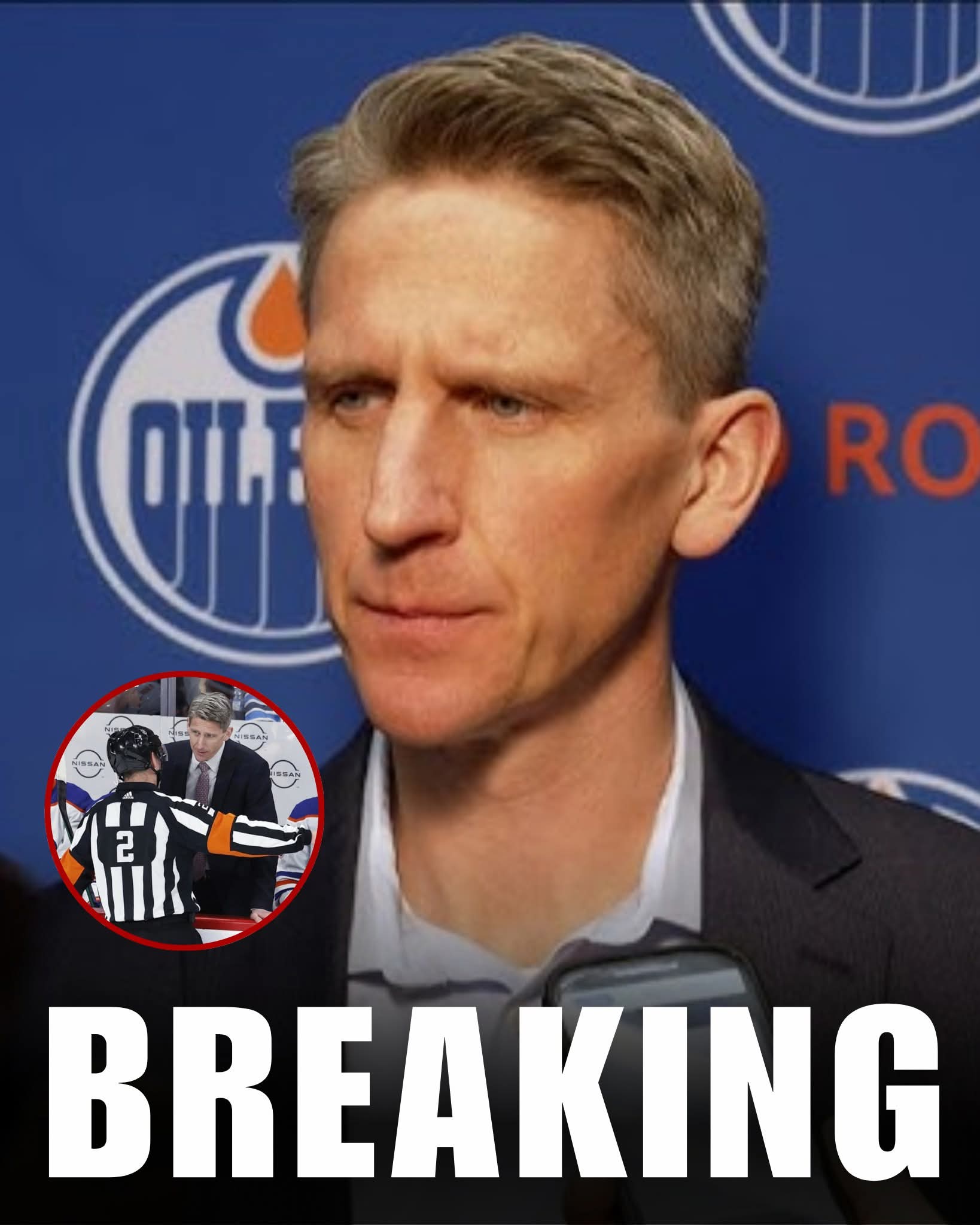 BREAKING NEWS: The NHL has issued an official warning and fined Edmonton Oilers head coach Kris Knoblauch $80,000 for unsportsmanlike conduct after he shouted “F* you” three times at the referees. The incident occurred following a controversial personal foul call in the game between the Edmonton Oilers and the Florida Panthers, involving a dangerous hit on star forward Connor McDavid. Full story ⤵️