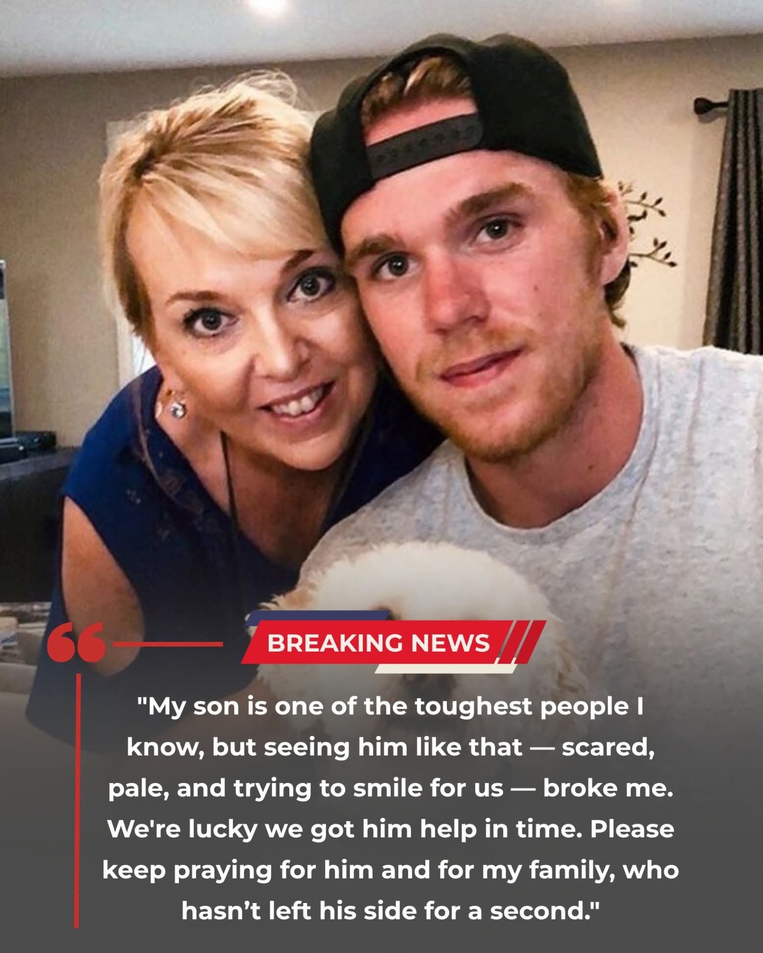 Hockey fans around the world are rallying around Edmonton Oilers captain Connor McDavid after a sudden medical emergency sent him to the hospital earlier this week. The incident, which reportedly occurred late Monday night, left teammates, coaches, and fans deeply concerned — but now, McDavid’s mother, Kelly McDavid, has broken her silence with an emotional update.