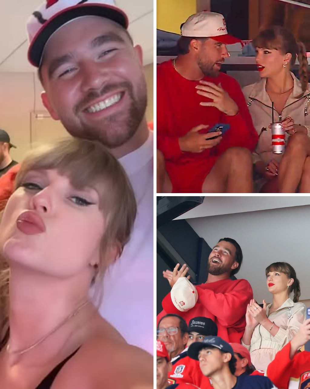 But just when everyone thought it couldn’t get any more picture-perfect, the couple made a surprise joint appearance in the VIP suite during their team’s latest game. Taylor, radiant in a chic red jacket, was all smiles beside Travis — and then, the unexpected happened.