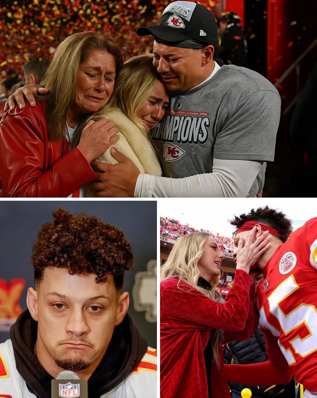“I Can’t Believe This Is Happening…” Patrick Mahomes’ trembling words silenced the entire NFL, while millions of Kansas City Chiefs fans felt their hearts clench. Under the dimmed lights of the press conference room, his voice was filled with emotion, holding back tears as he announced a decision that shocked the entire football world. His teammates stood silently, took off their helmets, their eyes red — realizing this was no longer about football, but about family, love, and profound loss. Fans who witnessed the event directly, as well as the entire online community, all broke out in grief. From this moment on, Patrick Mahomes was not just a superstar on the field — he became a symbol of sacrifice and family love. Everyone knew that this news would haunt the NFL for many years to come. WATCH MORE BELOW 👇👇👇
