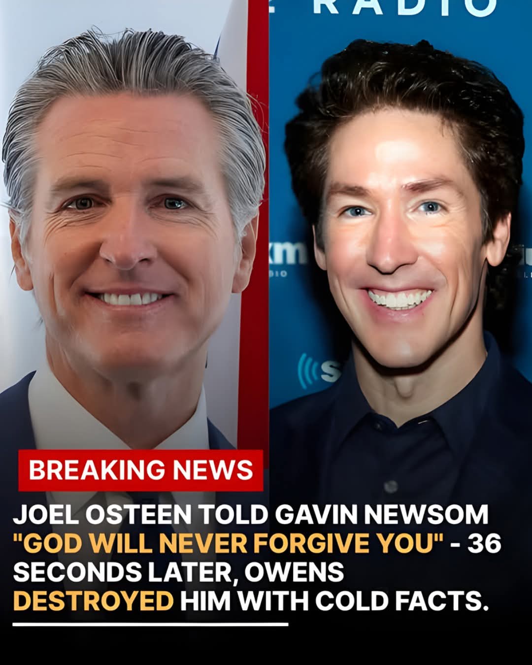 Joel Osteen Told Gavin Newsom “God Will NEVER Forgive You” — 36 Seconds Later, Newsom DESTROYED Him With COLD Facts. No one could believe Osteen actually said those words in front of hundreds of people. But the real shock came 36 seconds later — when Gavin Newsom stood up straight, opened Osteen’s own file, and unleashed a barrage of cold, hard facts that left the pastor pale and completely unable to respond….. Details ⤵️