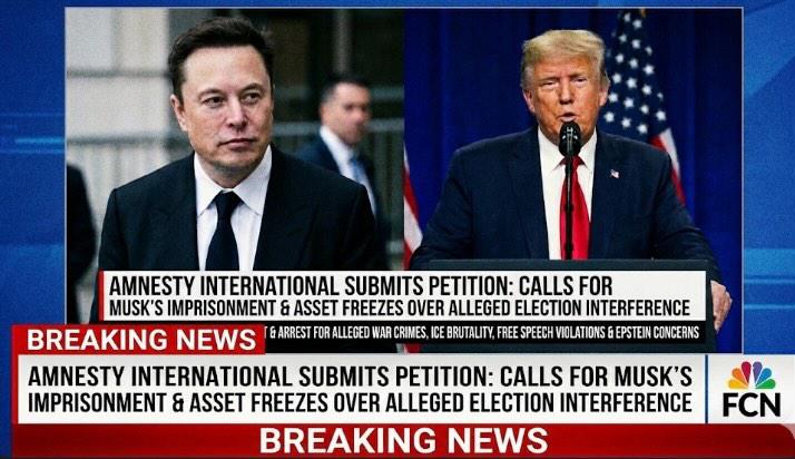 JUST IN: Amnesty International Submits Petition Seeking Possible Imprisonment and Asset Freezes for Elon Musk Over Alleged Foreign Election Interference, Also Calls for Donald Trump’s Impeachment and Arrest, Citing Allegations of War Crimes, ICE Brutality, Free Speech Abuse, and Epstein-Related Concern