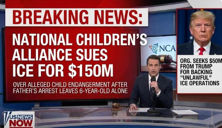 Washington, D.C. — Today, the National Children’s Alliance (NCA), a nonprofit coalition focused on child welfare and safety, filed a federal lawsuit against U.S. Immigration and Customs Enforcement (ICE) seeking $150 million in damages, alleging child endangerment and civil rights violations tied to immigration enforcement actions that left a 6-year-old girl alone in her home after her father was detained. The complaint also names former President Donald J. Trump as a defendant and seeks an additional $50 million in damages, asserting that his policies knowingly enabled or backed unlawful ICE operations. �