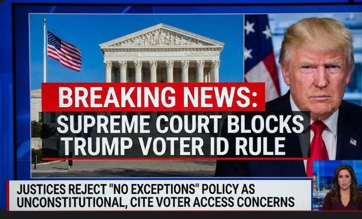 In a stunning and historic decision, the U.S. Supreme Court has blocked former President Donald Trump’s attempt to impose a nationwide “no exceptions” Voter ID requirement, calling the proposal a direct violation of constitutional voting rights.