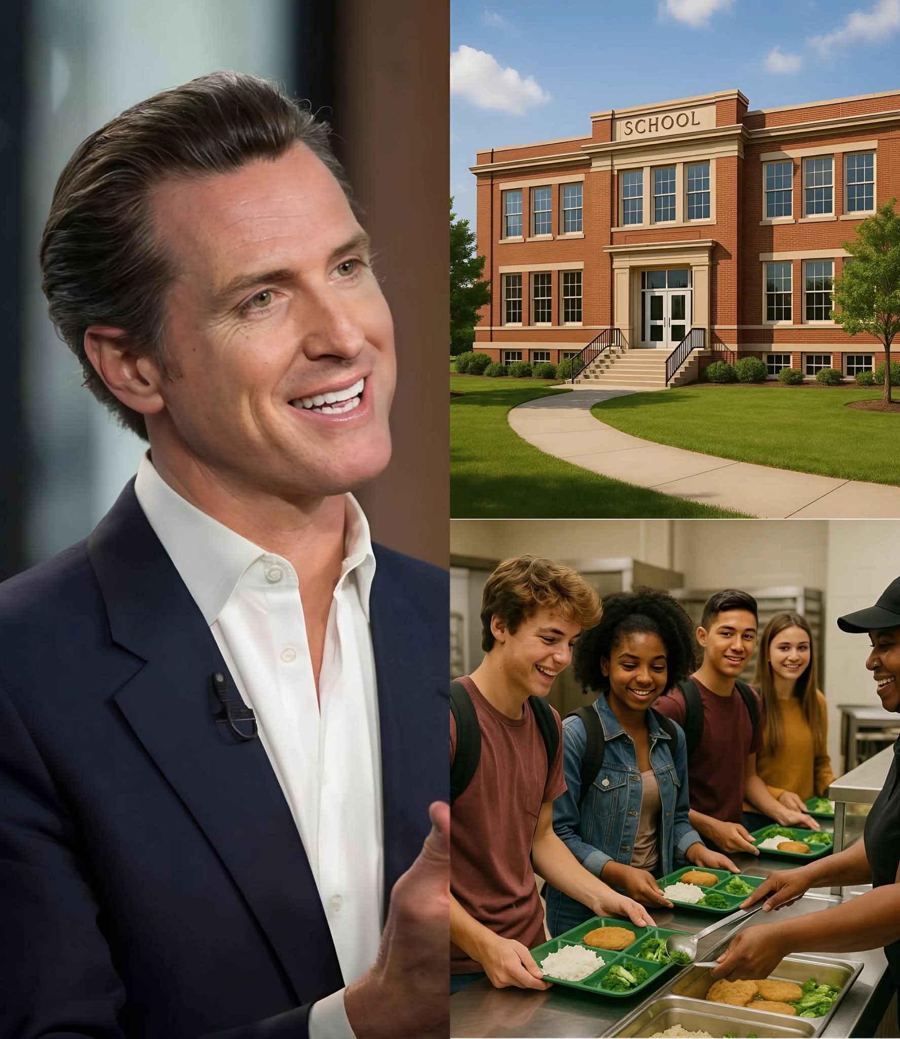 According to verified reports, Newsom personally covered more than $347,000 in outstanding school lunch debt across 103 schools nationwide, helping thousands of children whose families have been struggling to keep up with rising food costs.