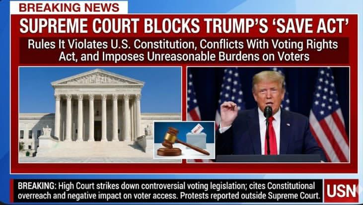 REPORT: The Supreme Court Blocks Donald Trump’s “Save Act,” Rules It Violates U.S. Constitution, Conflicts With Voting Rights Act, and Imposes Unreasonable Burdens on Voters