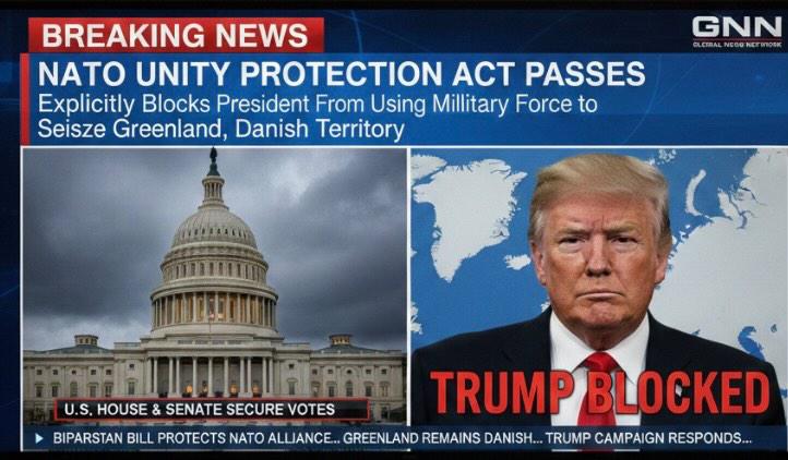 The U.S. House and Senate Secure the Necessary Votes to Pass the Bipartisan NATO Unity Protection Act, Explicitly Blocking Donald Trump From Using Military Force to Seize Greenland, a Danish Territory Under NATO Protection…. Full details ⤵️