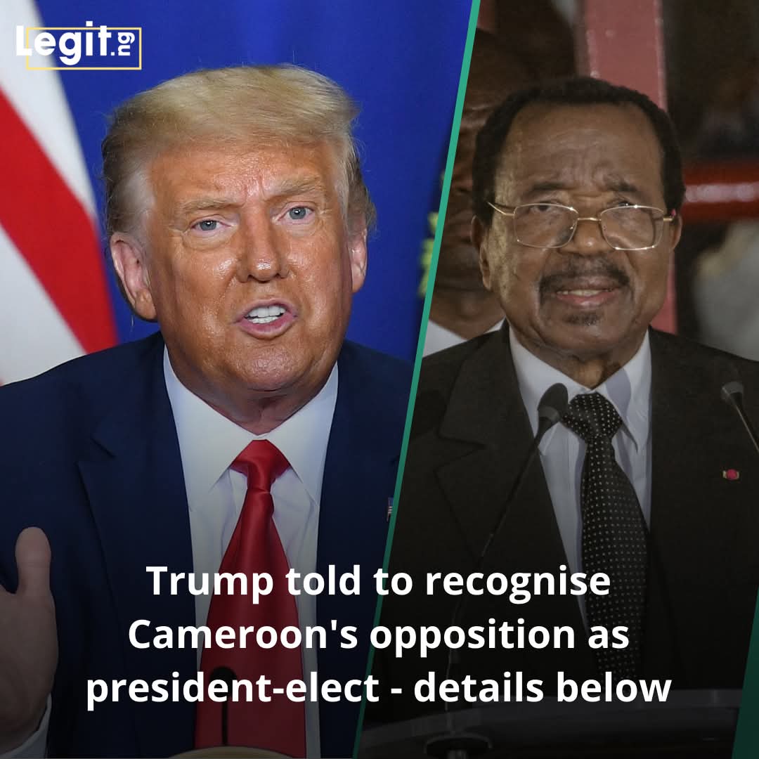 The United States’ president, Donald Trump, has been urged to announce America’s recognition of Cameroon’s opposition as the president-elect. Trump is also told to impose heavy sanctions on incumbent President Biya to pressure him out of power🇨🇲🇺🇸. Details⤵️