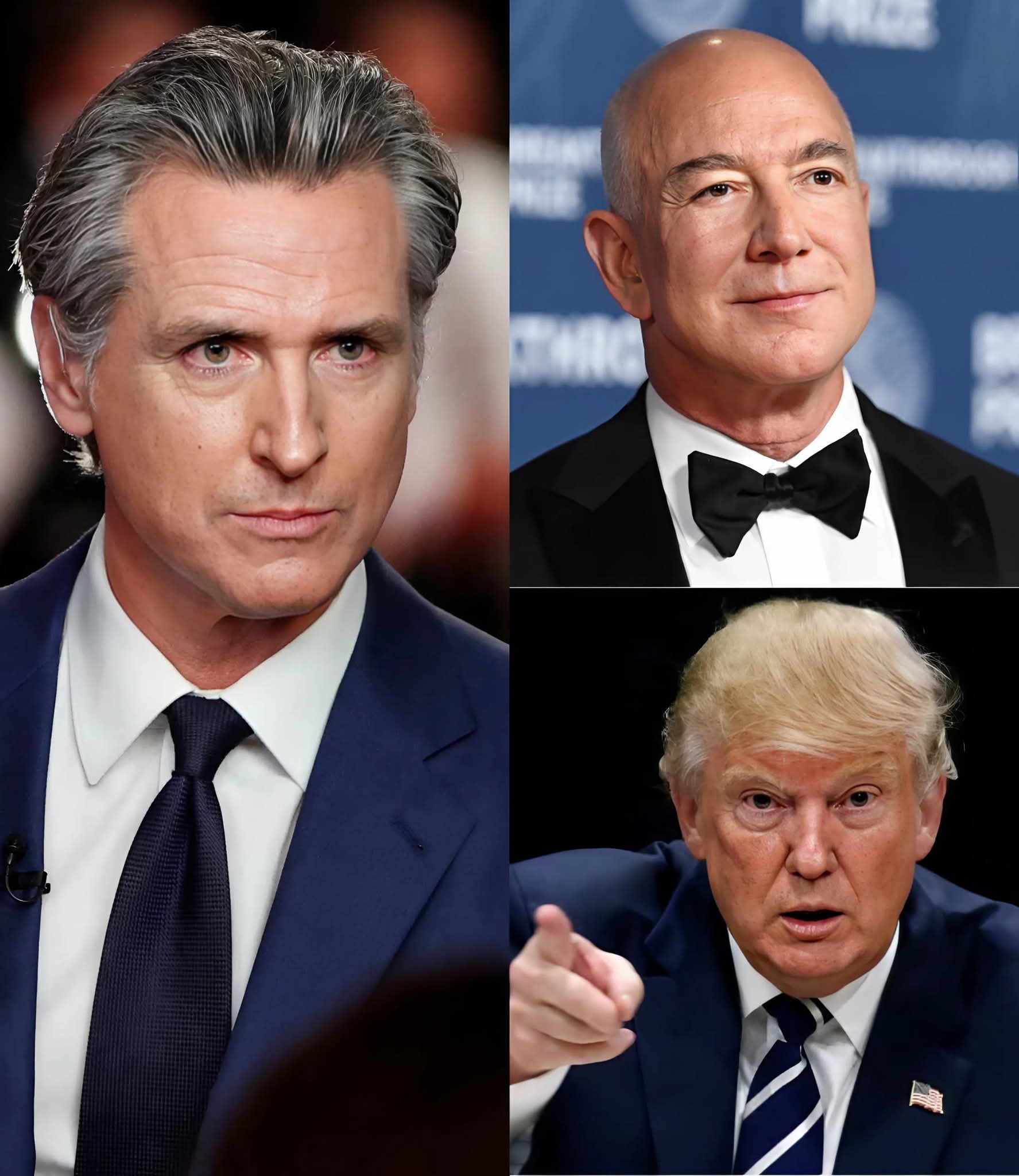 “Wake up, Jeff.” Gavin Newsom has just made a shocking announcement — he will terminate all sponsorships and business partnerships with Amazon, openly condemning Jeff Bezos’ alleged connection with T.r.u.m.p. The bold declaration quickly turned into an ultimatum that left both Bezos and the public stunned.“You support T.r.u.m.p, you support hate. I can’t stand with that,” Newsom declared powerfully on his official account.Bezos was reportedly caught off guard by the governor’s uncompromising stance.Hours later, T.r.u.m.p fired back on Truth Social, calling Newsom a “traitor to America.”But Gavin Newsom didn’t stay silent. Just hours later, he responded with eight short, cutting words — and those words silenced T.r.u.m.p completely, sending social media into an absolute frenzy…. full details ⤵️